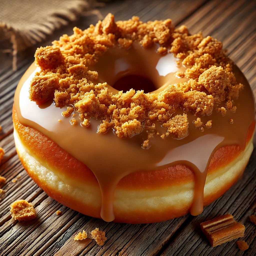 Un donut moelleux nappé d'un glaçage onctueux au spéculoos, sublimé par des éclats croquants pour une explosion de saveurs épicées et gourmandes.